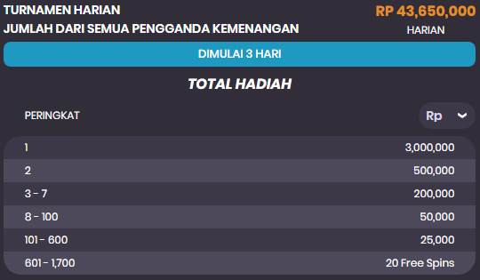 Tabel Hadiah Turnamen Harian