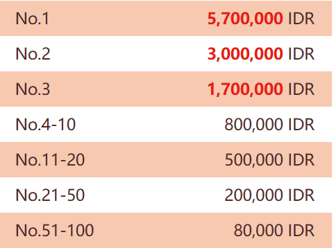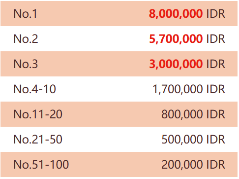 2. Total Hadiah IDR 3,900,000,000,- selama masa promosi