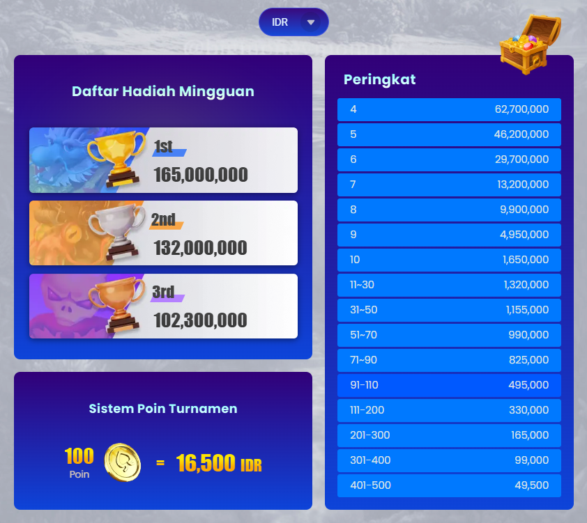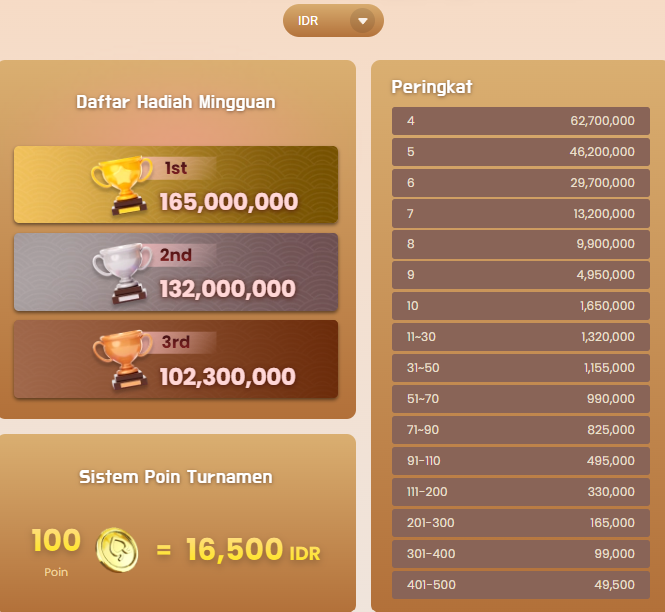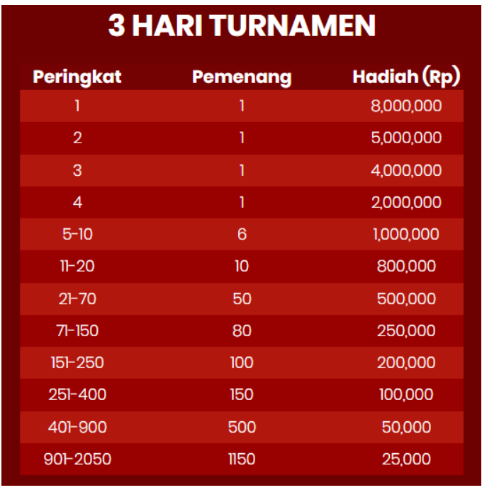 3. Semakin besar jumlah taruhan, semakin banyak poin yang diperoleh pemain dengan total poin tertinggi akan menempati peringkat teratas di papan peringkat.