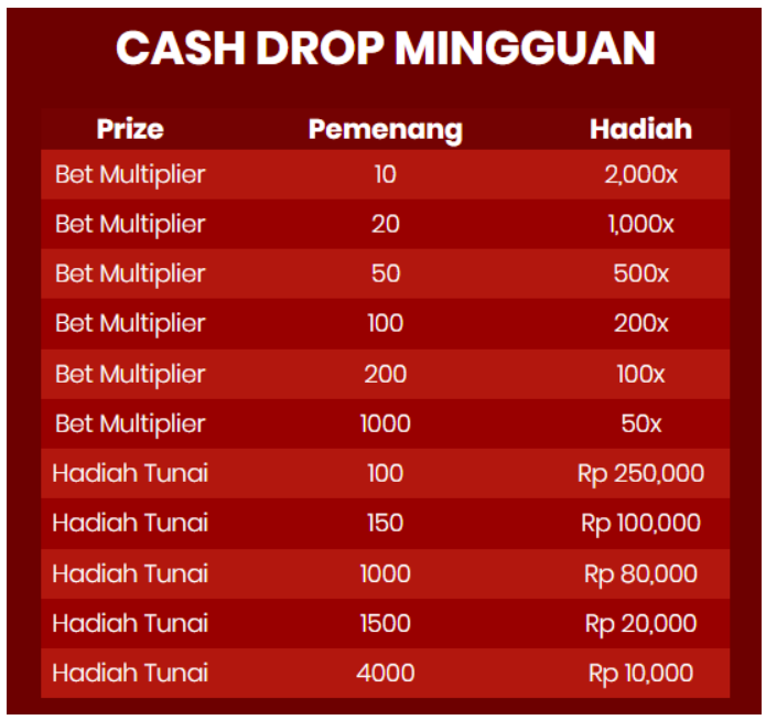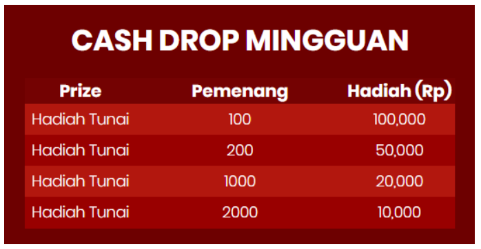2. Cash Drop akan diselenggarakan setiap minggu mulai dari :